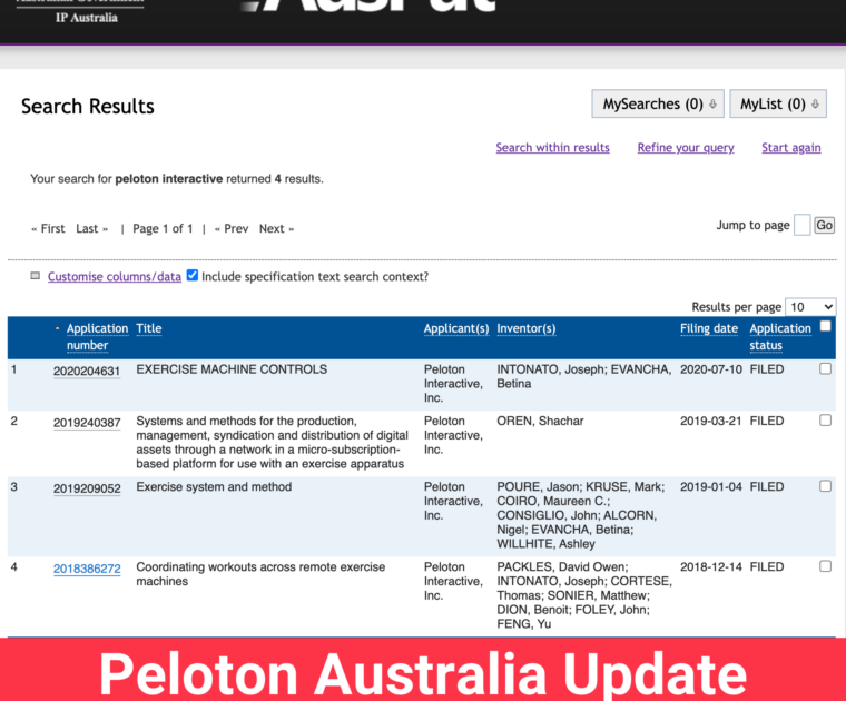 Further Peloton Australia evidence surfaces – patents & more trademarks