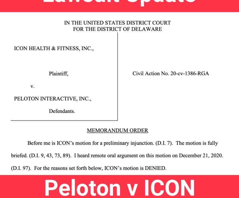 Peloton will be allowed to continue selling the Peloton Bike+ after a judge declined to make a preliminary injunction in a patent lawsuit brought against Peloton by ICON Health & Fitness, makers of the NordicTrack products.