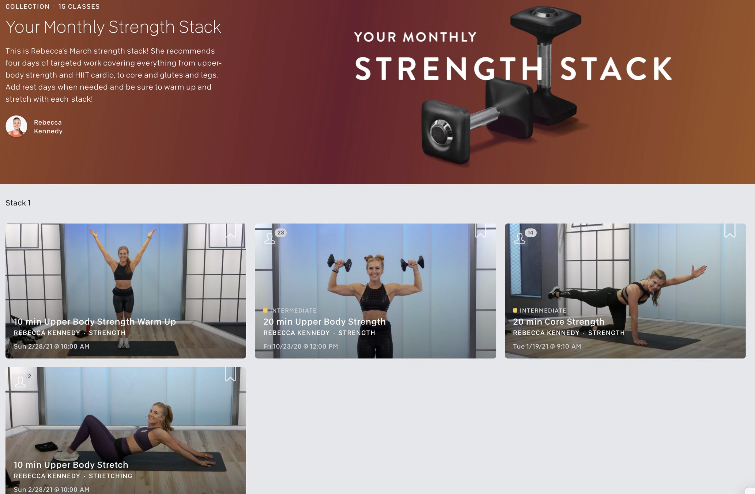 The “Your Monthly Strength Stack” collection is updated for March, and now features a series of classes by Rebecca Kennedy.