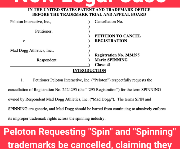 Peloton has made a filing to request that the trademarks be cancelled for the phrases “Spin” and “Spinning”, which are currently owned by Mad Dogg Athletics.
