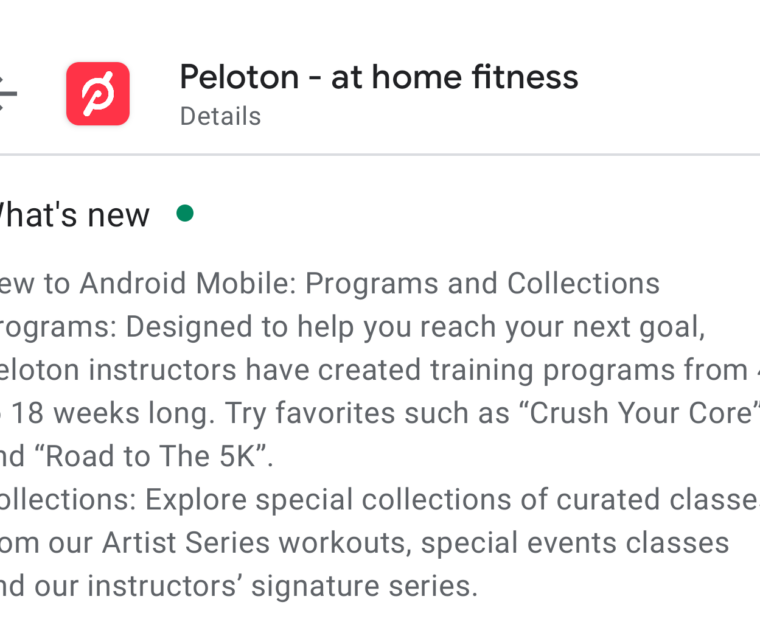 The Peloton Digital app for Android has now been updated with support for collections & programs. You can now view them within the Android app.
