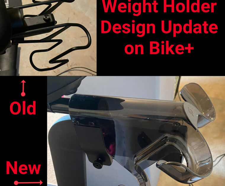 The Peloton Bike+ has recently had a design update, and is now shipping with plastic weight holders instead of the original black metal ones behind the bike seat.