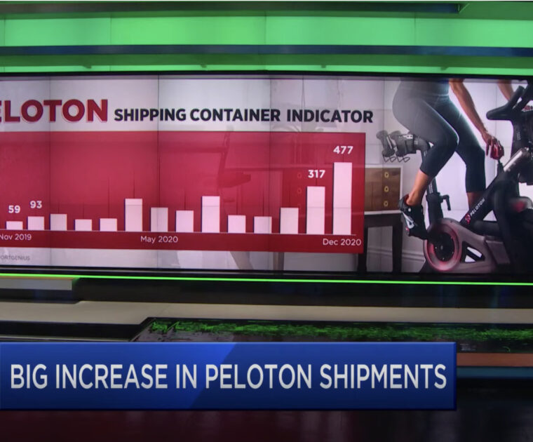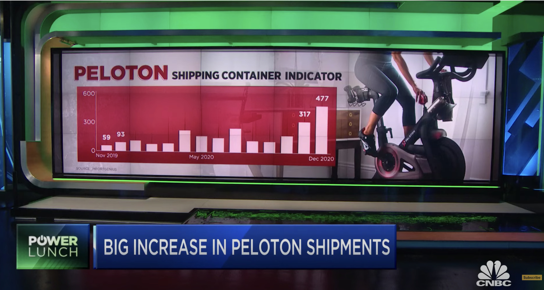 CNBC is reporting that there has been a massive 400% increase in the number of shipping containers containing Peloton items arriving into the US year over year.