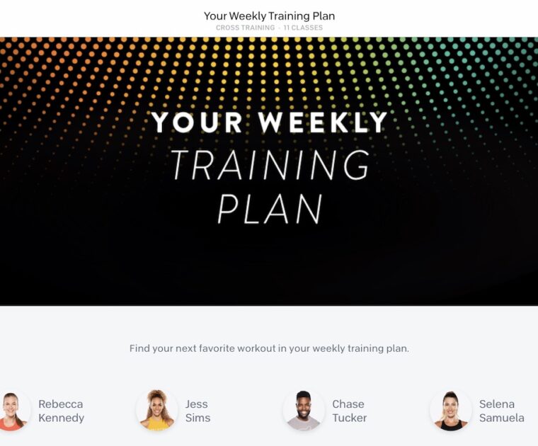 Peloton has added a new collection of workouts called “Your Weekly Training Plan”, curated by Rebecca Kennedy, designed to compliment workouts on the bike or tread.