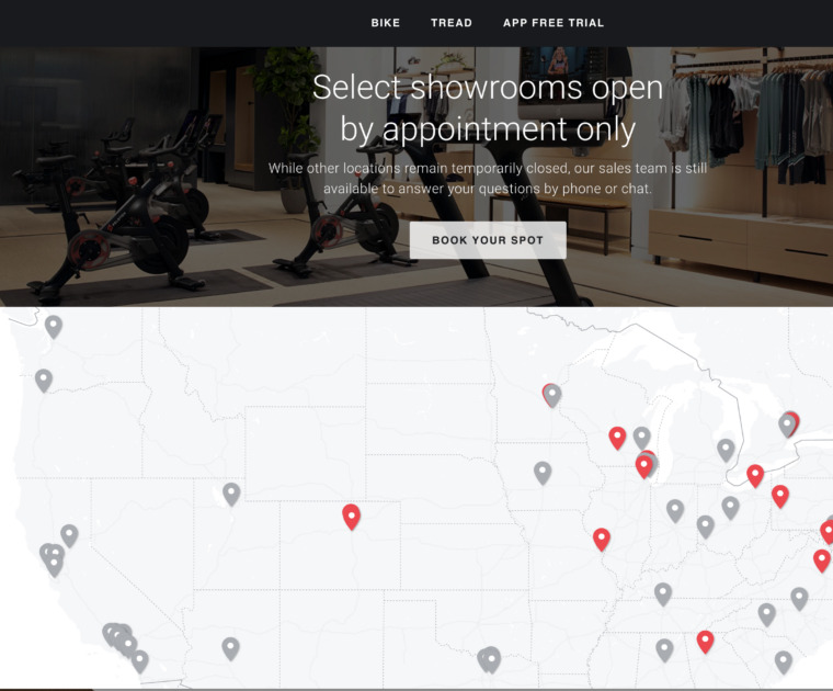 Peloton has begun reopening showrooms around the globe, from the United States, Canada, Germany, and the United Kingdom.