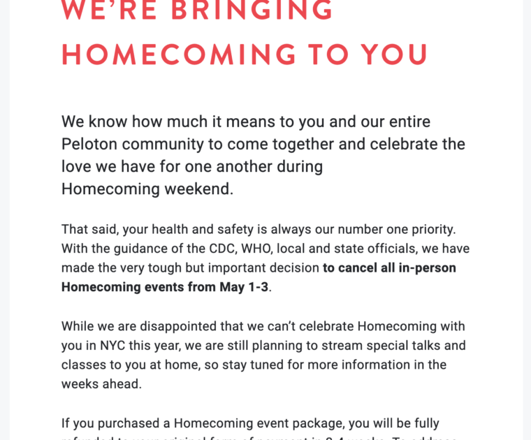Peloton cancels Peloton Homecoming 2020