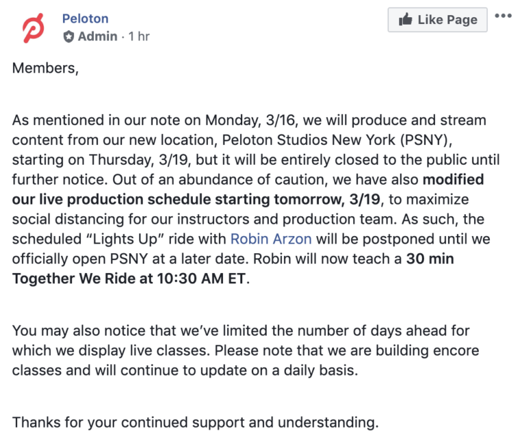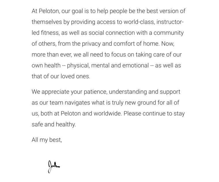 Latest Peloton Coronavirus COVID-19 Update – Letter from CEO John Foley