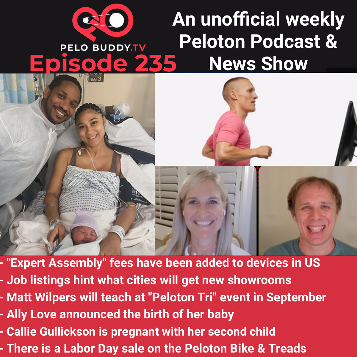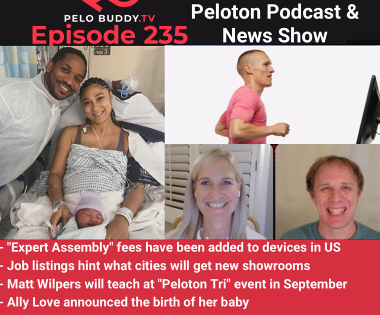 Episode 235 of Pelo Buddy TV, a Peloton podcast & Peloton news show. Top stories are the addition of expert assembly fees, a Peloton Tri event, Ally Love’s son was born, and much much more.