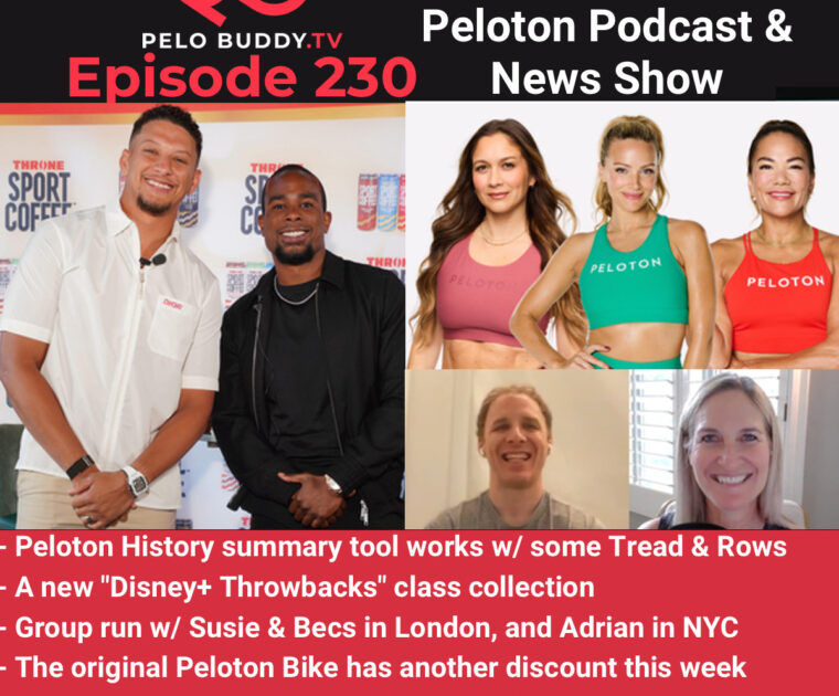 Episode 230 of Pelo Buddy TV, a Peloton podcast & Peloton news show. Top stories are updates to the Peloton History Summary tool, a Disney+ Throwbacks class collection, a group run in London with Susie Chan & Becs Gentry & more.