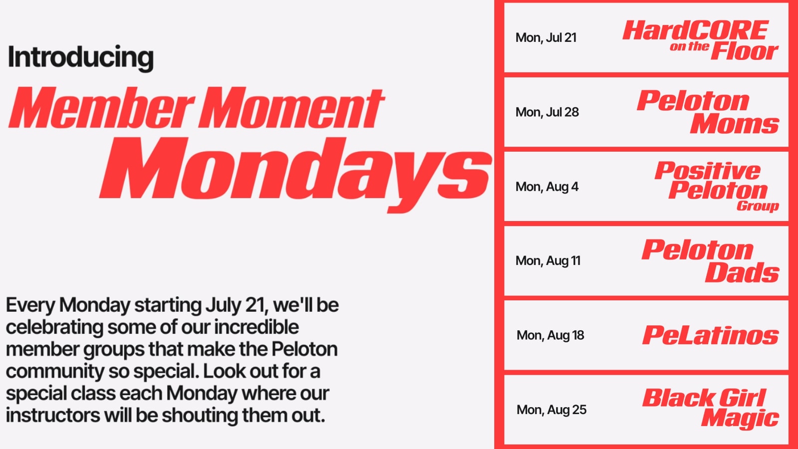 Peloton has officially kicked off their new “Member Moment Mondays” classes, which will feature various community groups for the day and give shoutouts in classes.