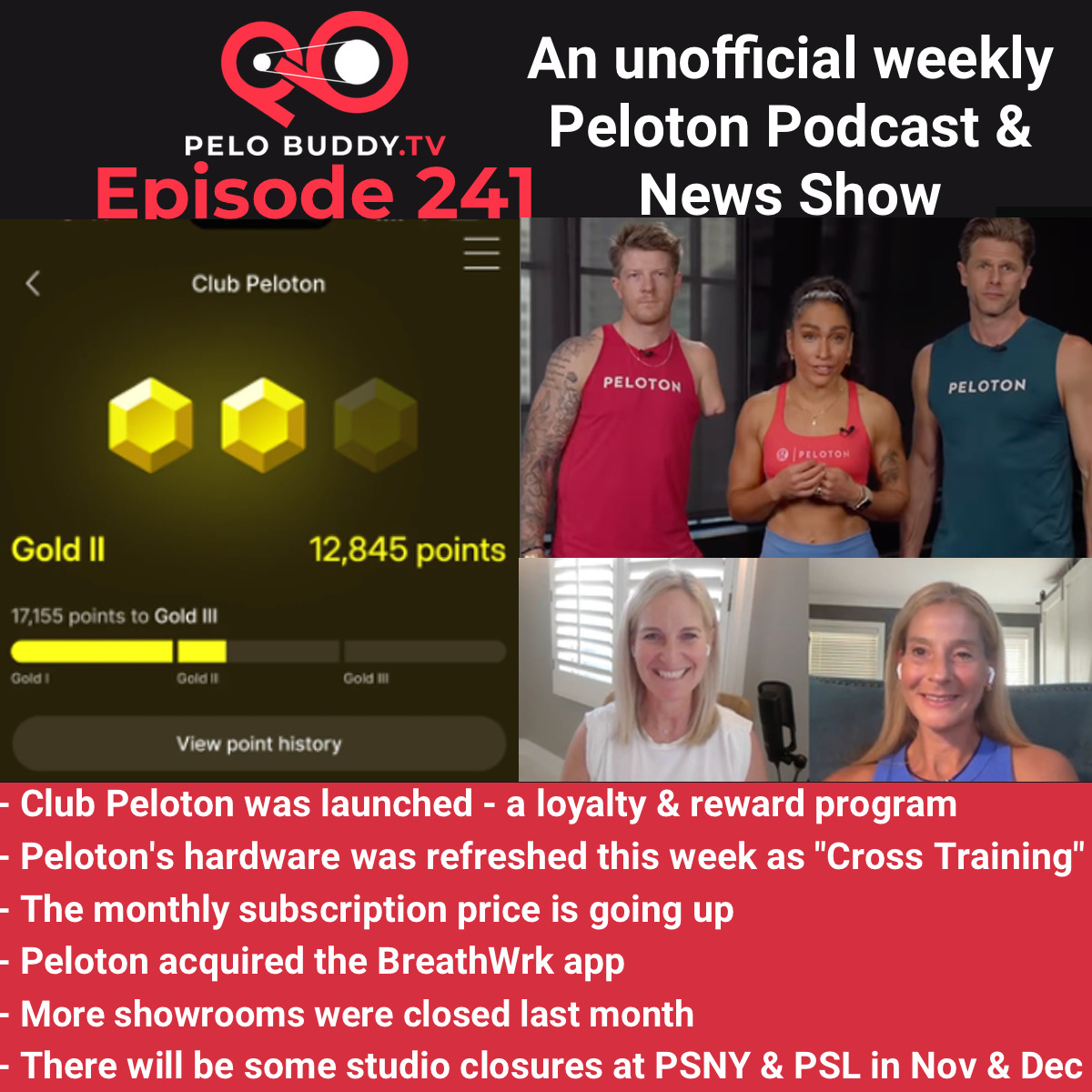 Episode 241 of Pelo Buddy TV, a Peloton podcast & Peloton news show. Top stories are the launch of Club Peloton, the BreathWrk app was acquired by Peloton, more showrooms have been closed, and more.