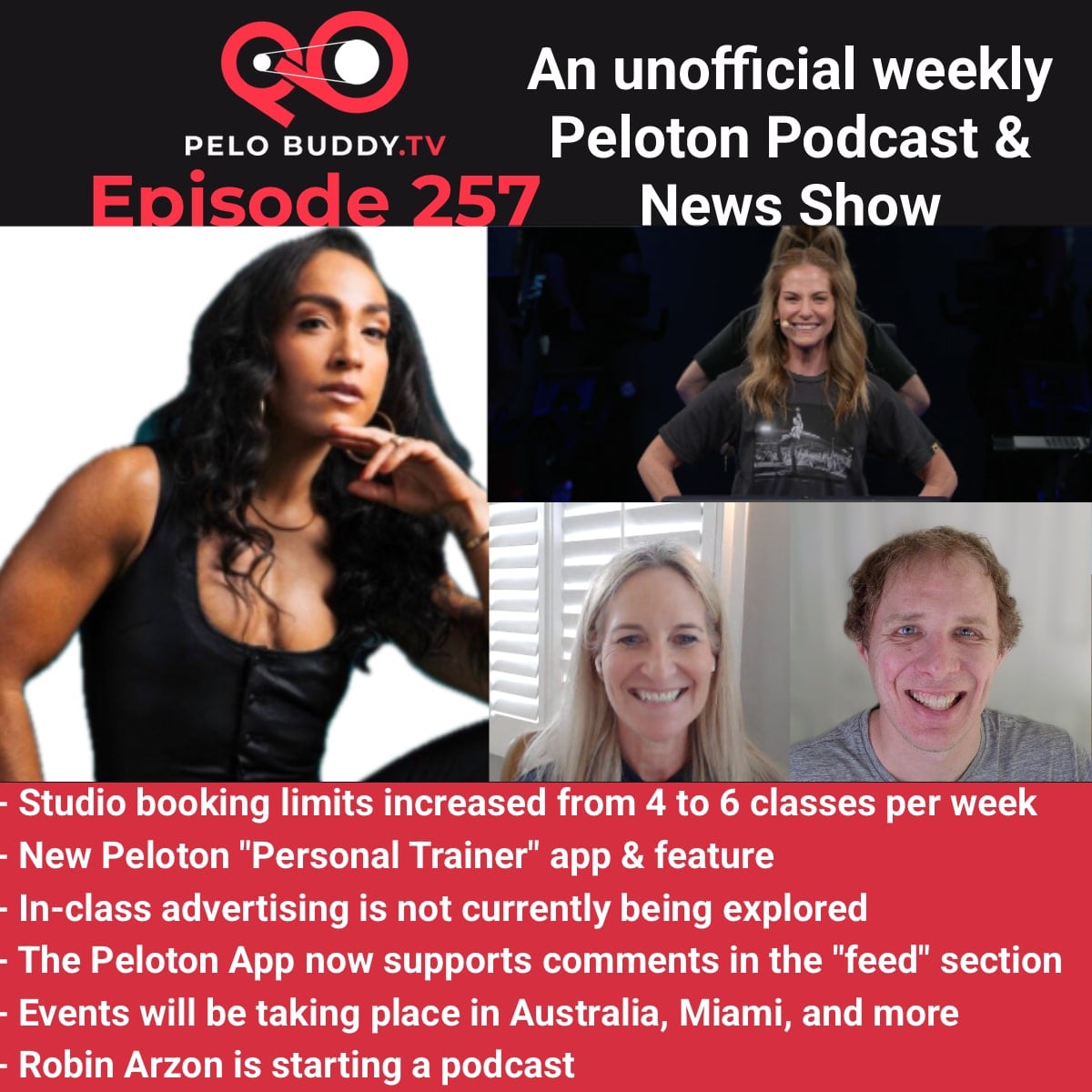 Episode 257 of Pelo Buddy TV, a Peloton podcast & Peloton news show. Top stories are an increasing of studio booking limits, Peloton personal trainer app, comments in the feed & more.