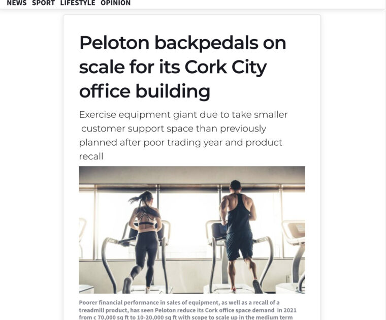 Peloton is reportedly looking for less office space than originally planned for their new customer support center in Cork, Ireland.