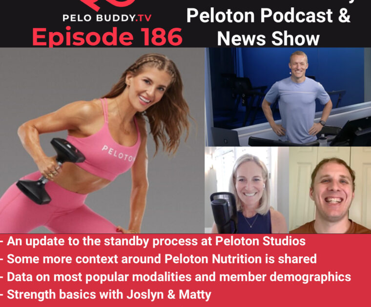 Episode 186 of Pelo Buddy TV, a Peloton podcast & Peloton news show. Top stories are a update on standby at Peloton Studios, demographics and the most popular class types, more info on Peloton Nutrition & more.