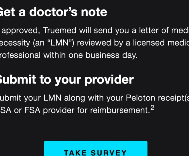 Partnership with TrueMed to use your HSA / FSA to buy a Peloton Bike / Tread / Row Device