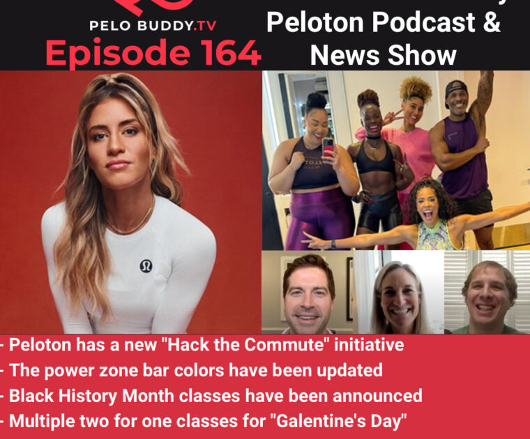 Pelo Buddy TV Episode 164 – Peloton “Hack the Commute” Initiative, Power Zone Color Updates, Galentine’s Day Classes, Timbaland Series & more Peloton news in this week’s Peloton Podcast
