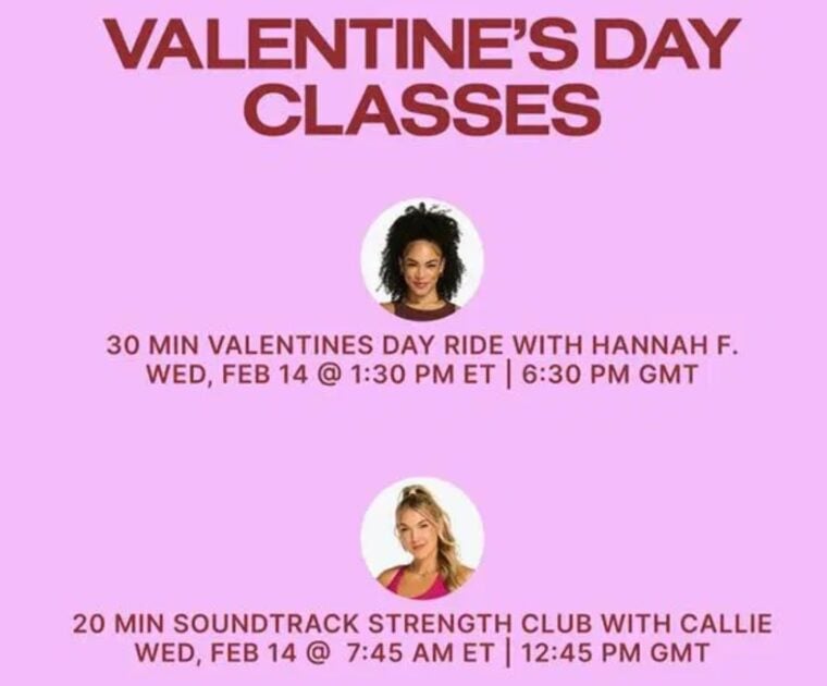 The schedule of 2024 Peloton Valentine’s Day classes has been announced.