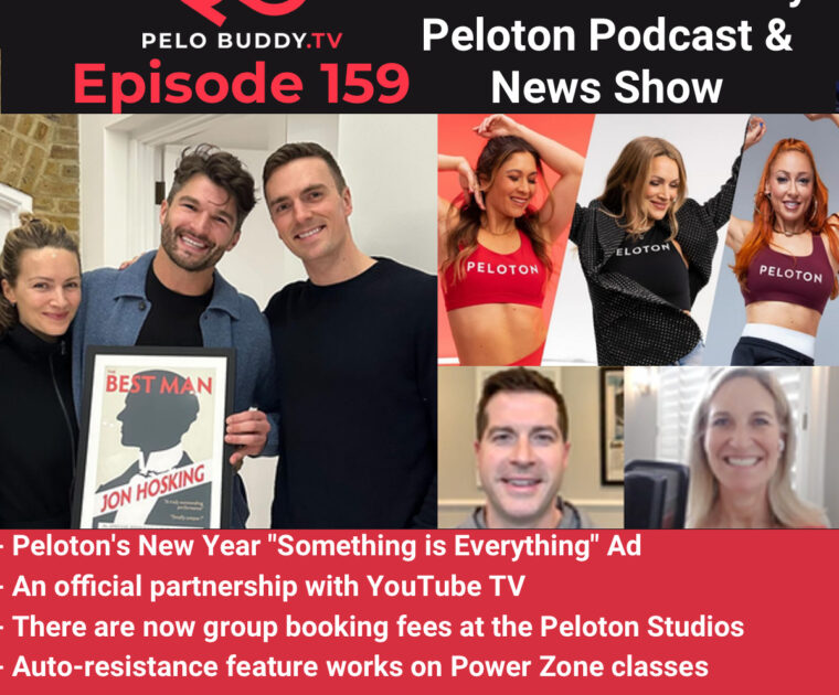 Episode 159 of Pelo Buddy TV, a Peloton podcast & Peloton news show. Top stories are new group booking fees at Peloton studios, a new YouTube TV partnership, updates from Jess Sims & Jenn Sherman, a new commercial and more.