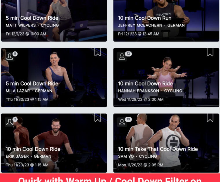 Quirk with Warm Up / Cool Down Filter on Peloton (But Cool Down Classes Are Not Purged)