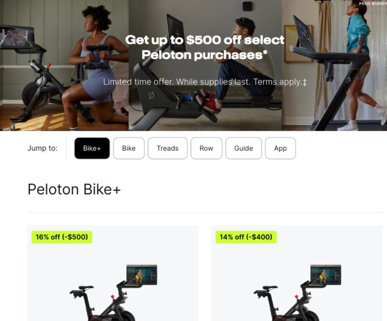 Peloton has launched “Holiday Deals” – limited time offers on all hardware devices through December 25, 2023.