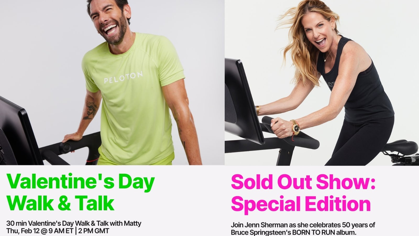Peloton’s featured classes this week include a Sold Out Show Ride featuring Bruce Springsteen’s Born to Run album, Walk & Talk, Valentine’s Day classes, and more!