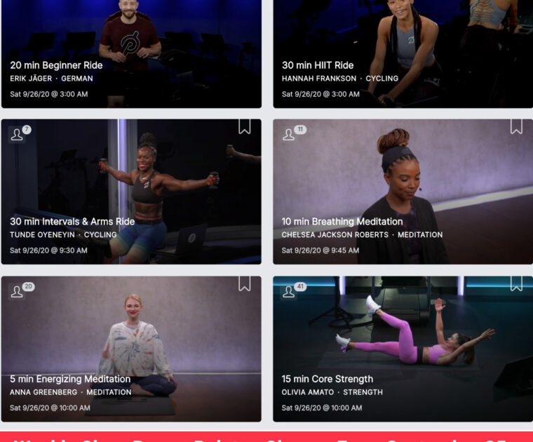 Weekly Class Purge: Peloton Classes From September 25 – 28, 2020 Removed from the On-Demand Library on November 24, 2023