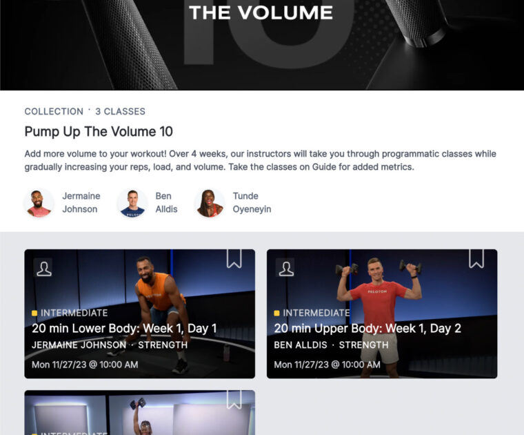 Peloton’s Pump Up The Volume 10 Strength Collection (Program) Released – Class List & Details