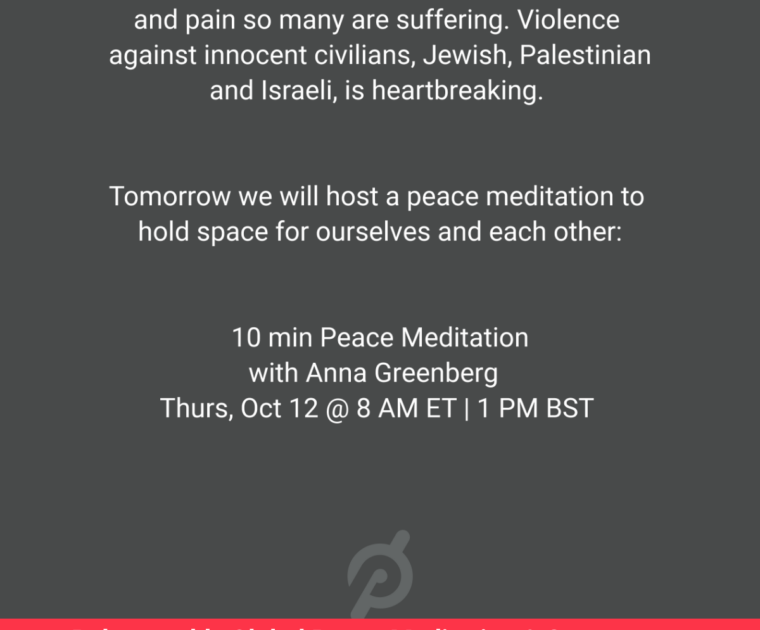 Peloton Adds Global Peace Meditation & Statement to Acknowledge Tragedy & Pain in Wake of Terrorist Attacks in Israel