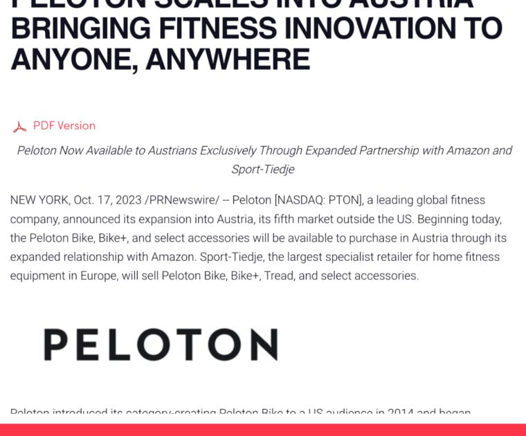 Peloton has launched in Austria, their first country expansion in more than 2 years. The Bike, Bike+, Tread, and app will all be available at launch today.