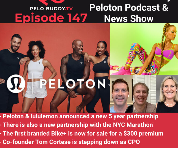 Episode 147 of Pelo Buddy TV, a Peloton podcast & Peloton news show. Top stories are a new partnership with Peloton & lululemon, a partnership with NYC Marathon, the first branded bike for sale, Ross Rayburn has a book, upcoming artist series & more.