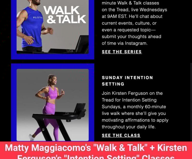 Matty Maggiacomo’s “Walk & Talk” Wednesdays and Kirsten Ferguson’s “Intention Setting” Sundays classes will be officially labeled on the Peloton platform moving forward.