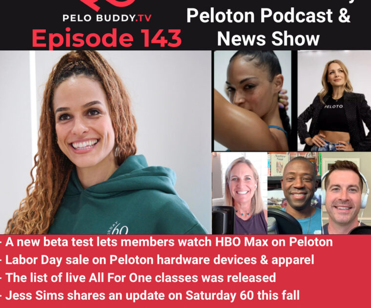 Episode 143 of Pelo Buddy TV, a Peloton podcast & Peloton news show. Top stories are HBO Max on Peloton Entertainment, a Labor Day sale, Cody auditioned for the Barbie movie, Jess Sims Saturday 60 Update & Dunkin Donuts partnership & more.