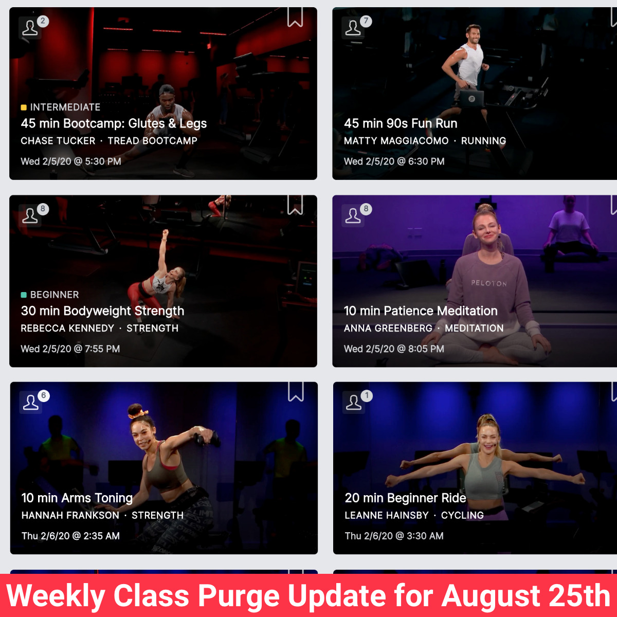 Peloton removed classes filmed between February 5-19, 2020 from the on-demand library on August 25, 2023.