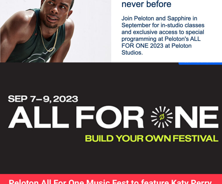 The Peloton All For One Music Fest will feature Katy Perry, Hozier, & Skrillex – plus rowing classes with members in studio. This information comes from a Chase Sapphire Experience event posted.