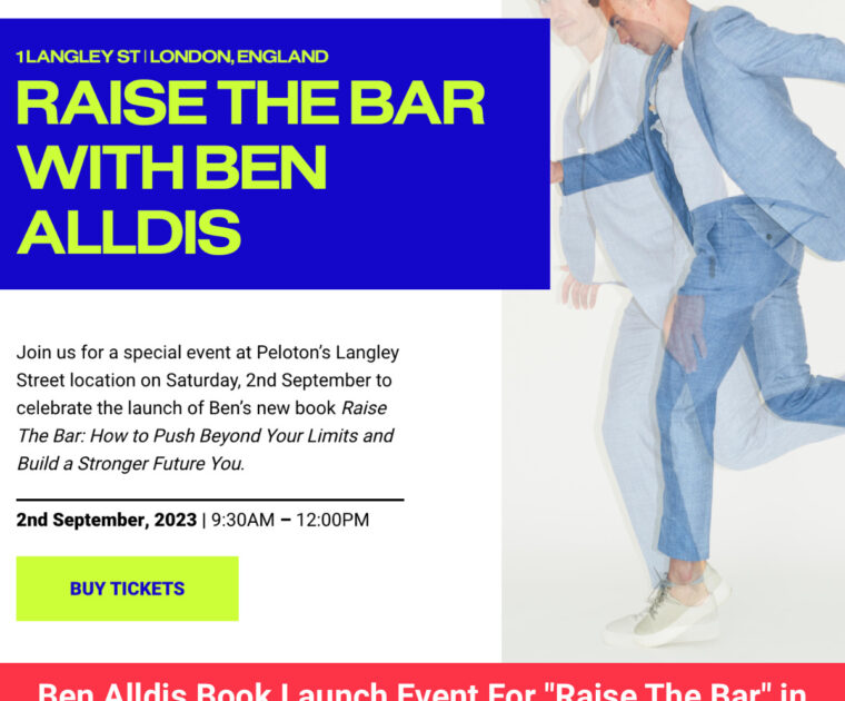 There will be a book launch event in London for Ben Alldis’ new “Raise the Bar” book hosted by Peloton on September 2, 2023.