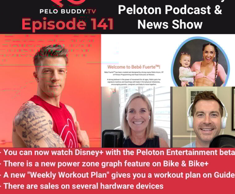 Episode 140 of Pelo Buddy TV, a Peloton podcast & Peloton news show. Top stories are Disney+ on Peloton Entertainment, a new power zone graph feature, Robin Arzon’s new toy line, a new “Weekly Workout Plan” feature on Guide and more.