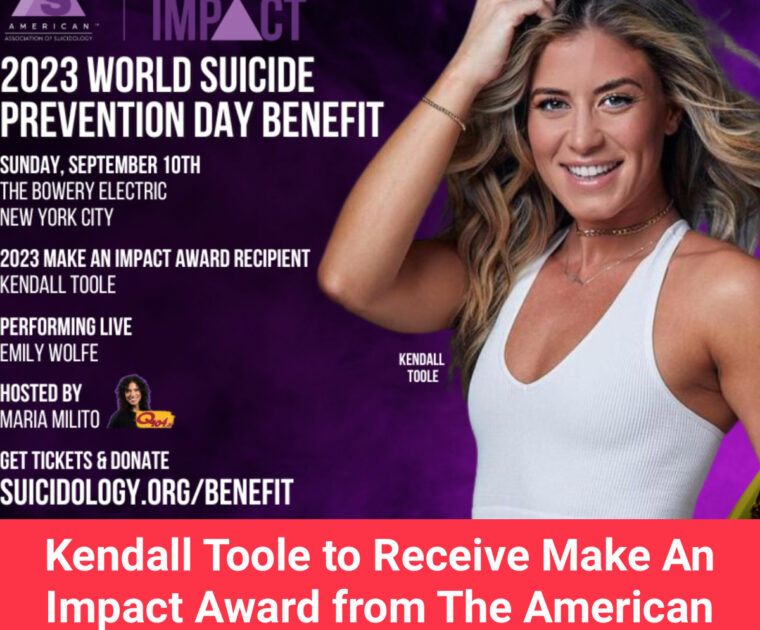 Peloton instructor Kendall Toole will receive the “Make An Impact Award” from the American Association of Suicidology (AAS) on September 10, 2023.