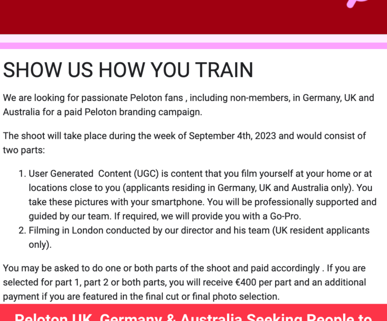 Peloton UK, Germany & Australia Seeking People to Appear in Upcoming Advertising Campaign