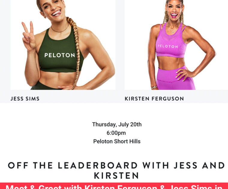 Peloton instructors Kirsten Ferguson and Jess Sims will appear at an event at the Peloton store in Short Hills, New Jersey on Thursday, July 20.