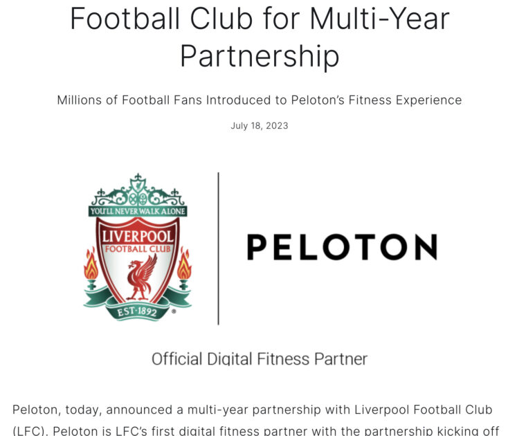 Peloton and Liverpool Football Club have announced a multi-year partnership.