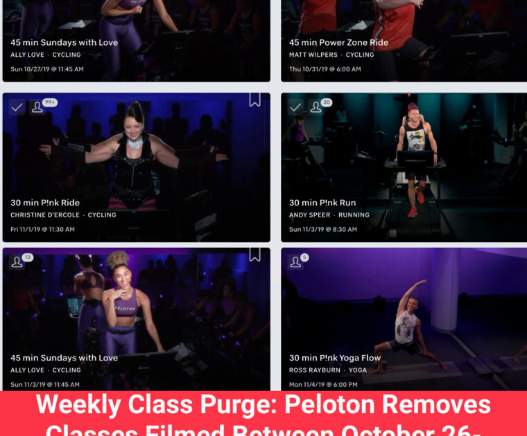 Weekly Class Purge: Peloton Removes Classes Filmed Between October 26-November 13, 2019 on July 14, 2023