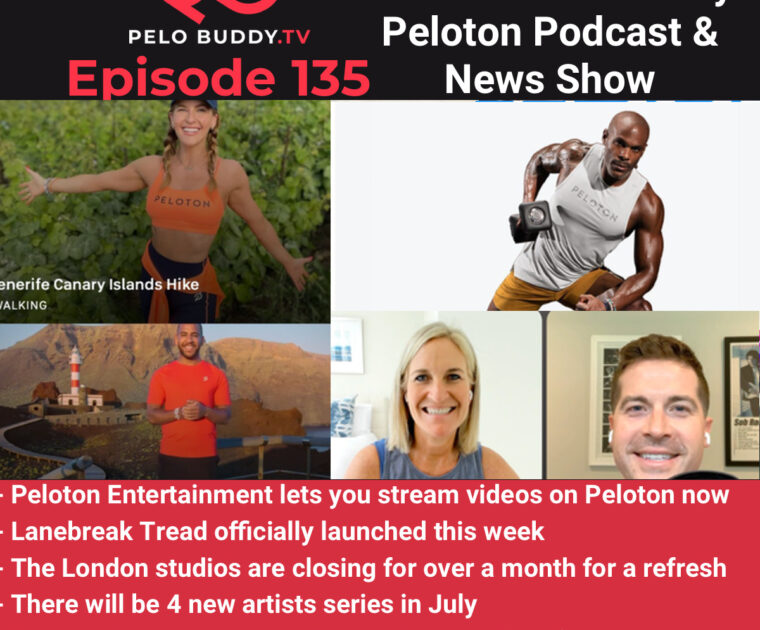 Episode 135 of Pelo Buddy TV, a Peloton podcast & Peloton news show. Top stories are streaming video is now available on Peloton, Lanebreak Tread, Peloton Studios London is closing for renovations & more.