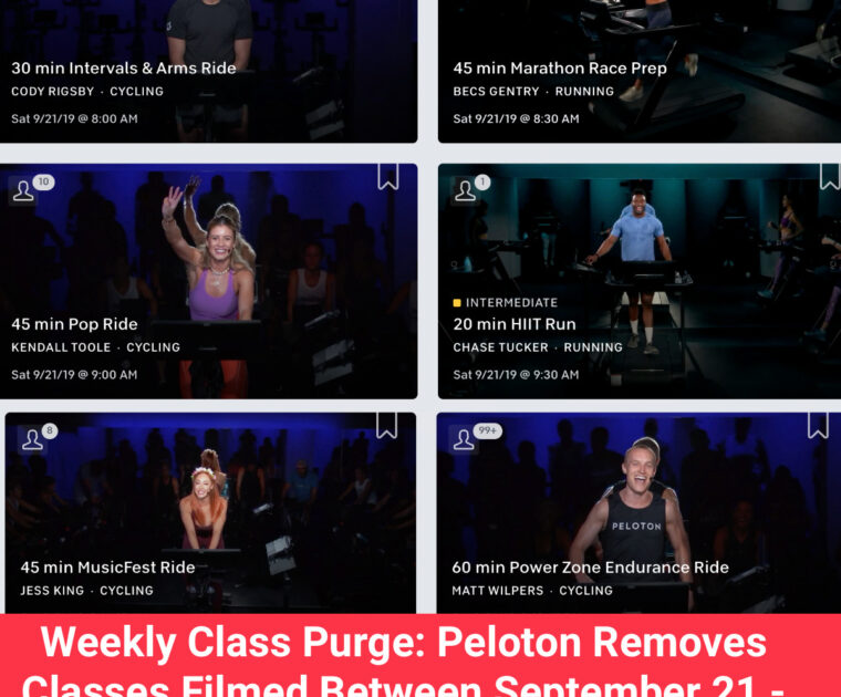 Weekly Class Purge: Peloton Removes Classes Filmed Between September 21 – October 9, 2019 on June 30, 2023