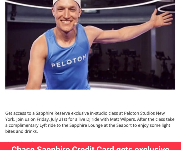 A spot in Matt Wilpers’ Live DJ Ride at Peloton Studios NY in July 2023 has been offered exclusively to Chase Sapphire cardholders.