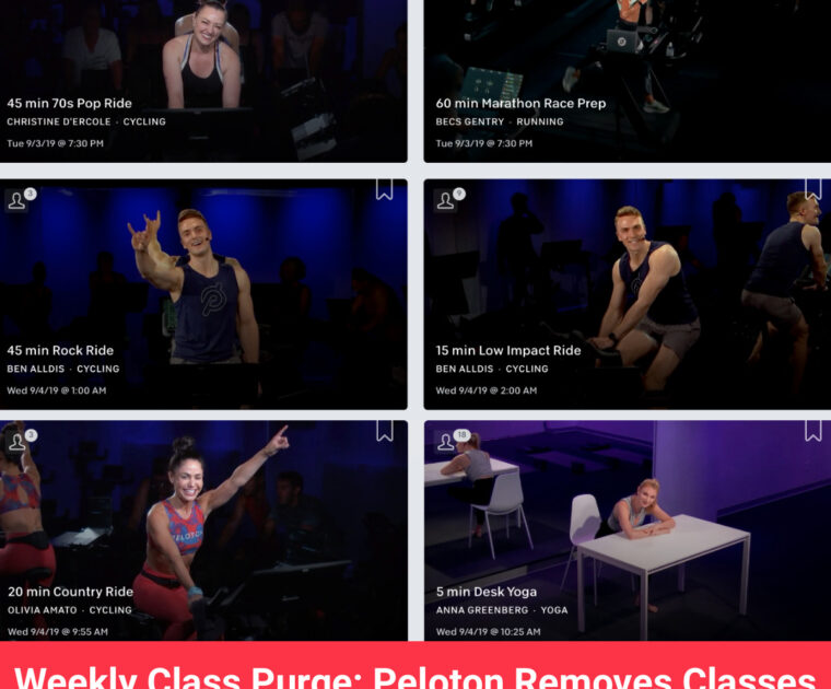 Weekly Class Purge: Peloton Removes Classes Filmed Between September 3-20, 2019 on June 23, 2023