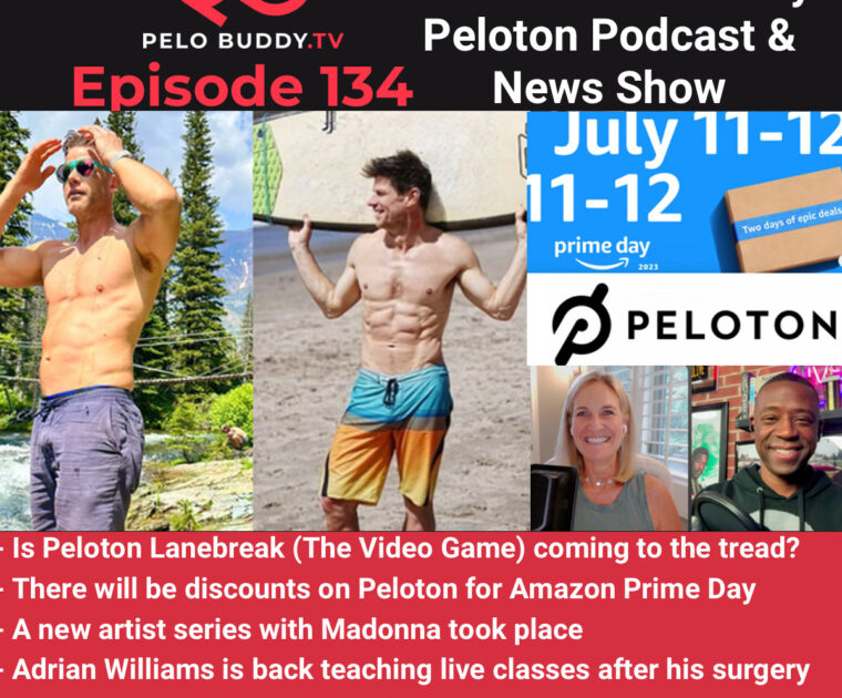 Episode 134 of Pelo Buddy TV, a Peloton podcast & Peloton news show. Top stories are Lanebreak could be coming to Tread, there will be discounts on Peloton for Amazon Prime Day, Adrian Williams is back, a Madonna artist series & more.