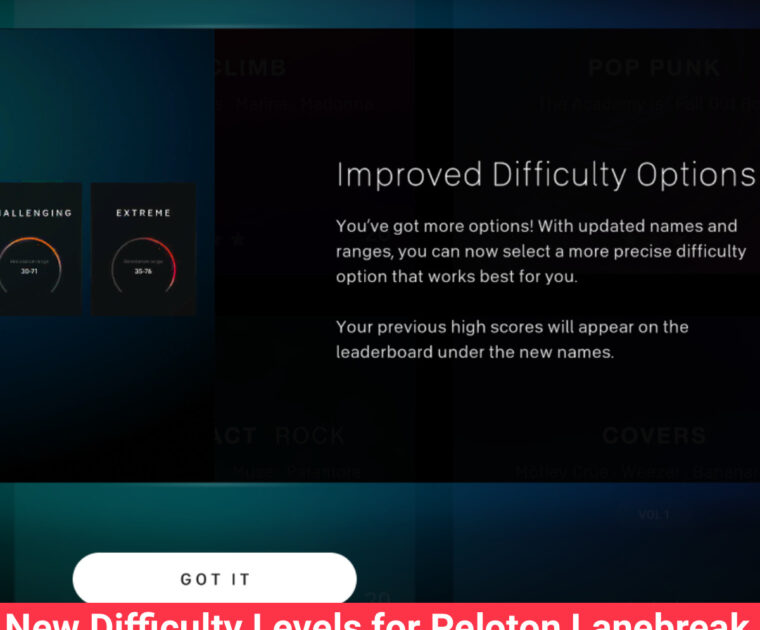 Peloton has updated the difficult levels on Peloton Lanebreak, the Bike/Bike+ video game ride format.