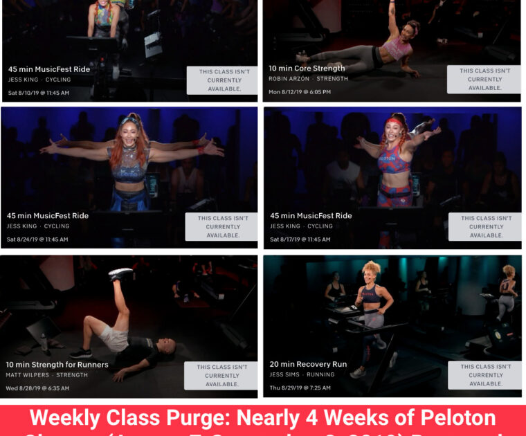 Weekly Class Purge: Nearly 4 Weeks of Peloton Classes Removed From On-Demand Library (August 7-September 2, 2019) on June 16, 2023
