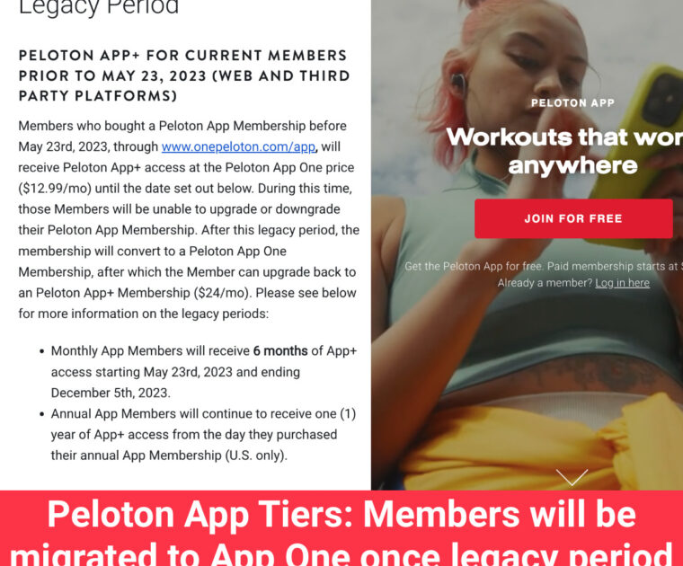 Peloton has shared that they will default all Peloton App users to the new Peloton App One tier once the legacy period ends later this year.