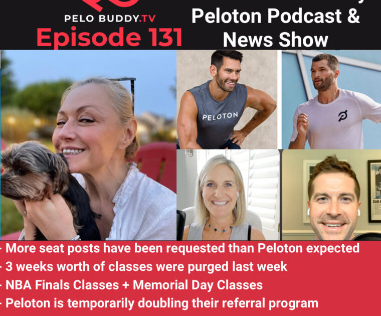 Episode 131 of Pelo Buddy TV, a Peloton podcast & Peloton news show. Top stories are Peloton has gotten more requests for seat posts than expected, classes for NBA finals & Memorial Day, more class purges, temporary increase of the referral program, Jess King DJ & more.